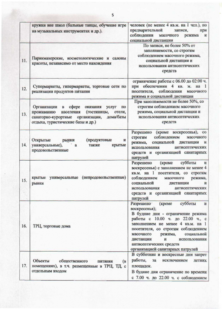 Непродуктовые магазины, кружки вне школ - режим работы с 10:00 до 20:00.