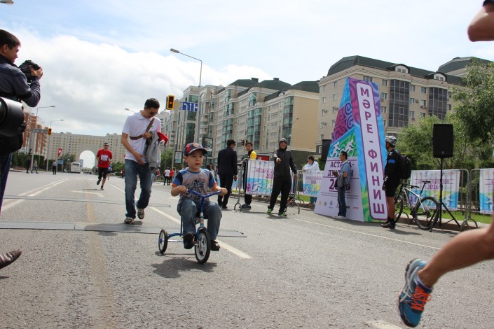 Спортивное состязание включало в себя три дистанции: бег на 5 километров, 15-ти километровый велозаезд и снова бег на 5 километров. Высокопоставленные чиновники, как и все участники, преодолели 25 километров в честь юбилейной даты - 25-летия независимости Казахстана.