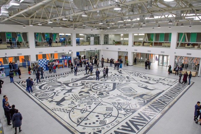 Стоит отметить, что строительство выставочного комплекса было начато в феврале 2016 года. Общая стоимость объекта составляет 1 227,686 тысячи тенге. Вместимость - 260 человек. Общая площадь здания - 4 437,8 квадратных метров. Первый этаж полностью предназначен для проведения выставок. Выставочный зал комплекса украшен необычным напольным панно в этническом стиле.