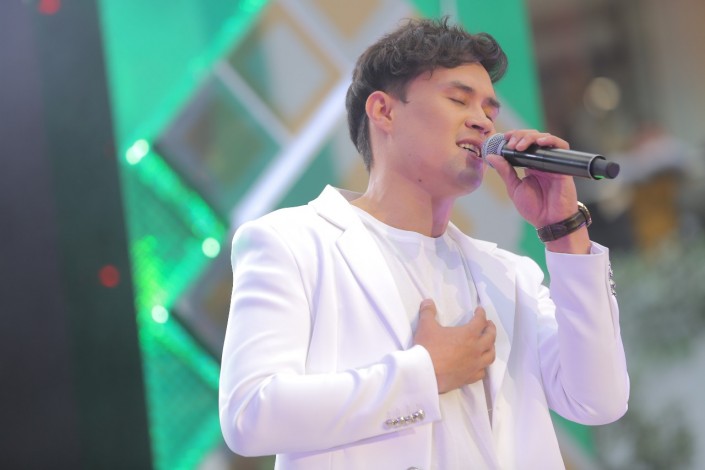 Финальный концерт телешоу открыл Ернар Айдар. Женская половина встретила его громкими овациями. Артист исполнил несколько песен, зал громко ему подпевал.