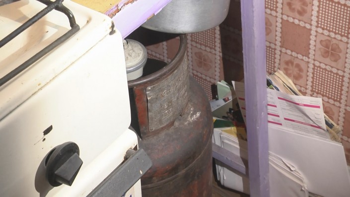 "Видите, плита газовая. Там возле стенки - баллон газовый. А тут печка. Все рядом в кухне. Конечно, страшновато. Опасно. Постоянно забиваются дымоходы, угарный газ. И пожары случались. После взрыва за два года у нас ничего не изменилось. Бабушки также таскают ведра с углем по этажам. Грязь, пыль", - считает житель Шахана Виктор Короленко.
