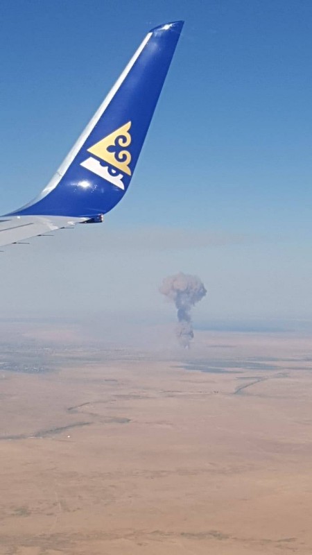 Вид на взрыв на территории воинской части города Арысь с самолета. Фото: facebook.com/Павел Александров