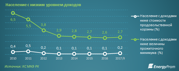 Доля населения с доходами ниже прожиточного минимума составила 2,7 процента (по итогам 2016 года было 2,6 процента).