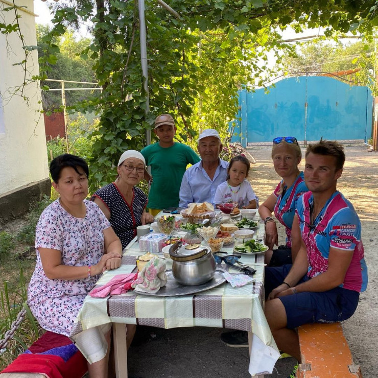 "Хотя физически среда была жесткой, социальная среда была намного добрее. В мой первый день в Казахстане в супермаркете меня встретил казах примерно моего возраста, спросил, нужно ли мне что-нибудь и настоял на том, чтобы заплатить за бананы, воду и хлеб: "Ты гость в нашей стране", - он улыбнулся. После нескольких тяжелых миль по дороге я не особо хотел болтать. Я встретил двух мужчин, они говорили только по-казахски, и разговор был ограниченным, хотя у них явно был скромный образ жизни. Перед отъездом один из мужчин дал мне огурец, помидор и яблоко. Это был простой и мощный жест и важное напоминание о том, что щедрость всегда возможна и не обязательно должна быть экстравагантной, чтобы иметь смысл. Я с благодарностью съел свежую еду, прежде чем отправиться в путь", - написал он.