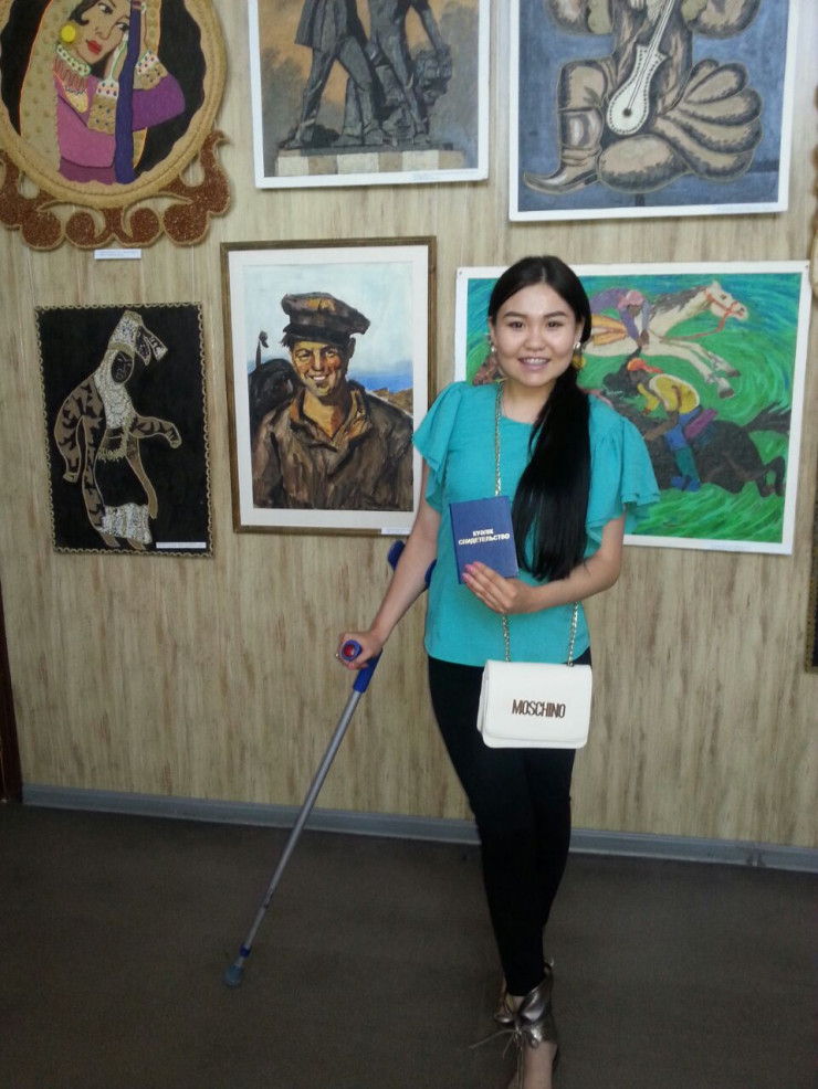 "Уже 5 лет я хожу с костылем. Дома, на работе он мне не требуется. Но без костыля я не могу ходить на улице, потому что я переживаю, что не успею перейти дорогу. Когда я спешу, ноги заплетаются, чтобы не упала, со мной костыль", - объяснила Айдана.