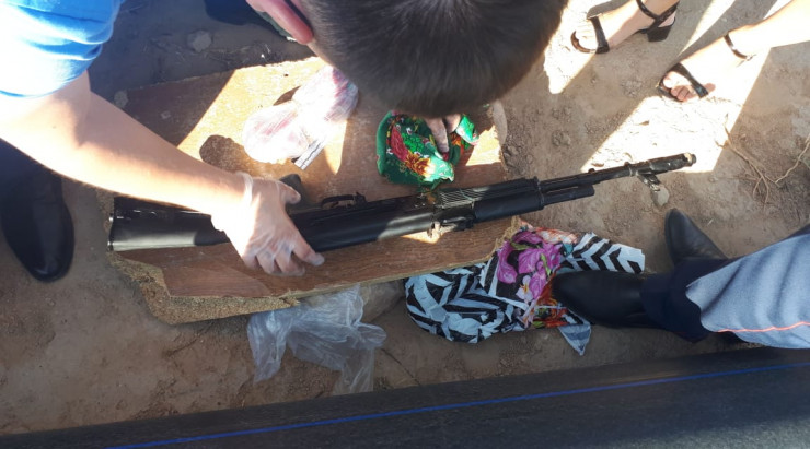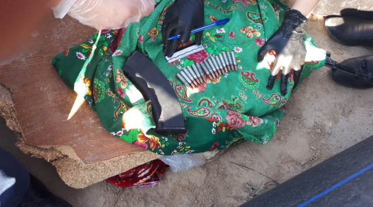 Кадры с места задержания распространили пользователи WhatsApp. На фотографиях видны патроны с автоматом, а также другие предметы. Кроме того, были опубликованы данные задержанного. Им якобы является 29-летний уроженец Бейнеуского района, который живет в Жанаозене.