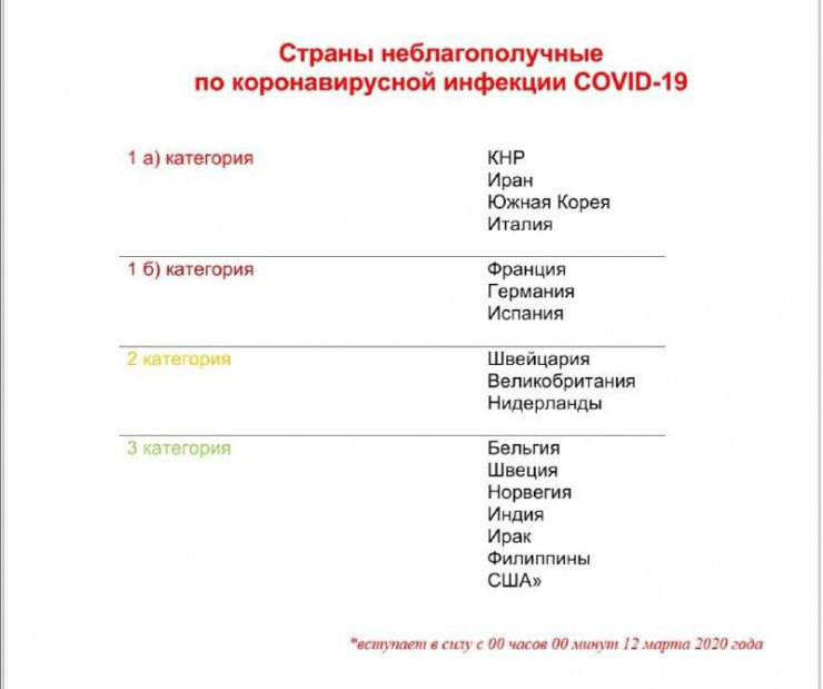 "В целях недопущения ввоза с сегодняшнего дня должны быть приняты следующие меры. Ограничение международного пассажирского сообщения со странами категорий 1А и 1Б, 2 и 3. Запрет на выезд на международные спортивные, культурные, туристические мероприятия в страны категорий 1А, 1Б, 2 и 3", - заявил на брифинге в СЦК заместитель премьер-министра Ералы Тугжанов.
