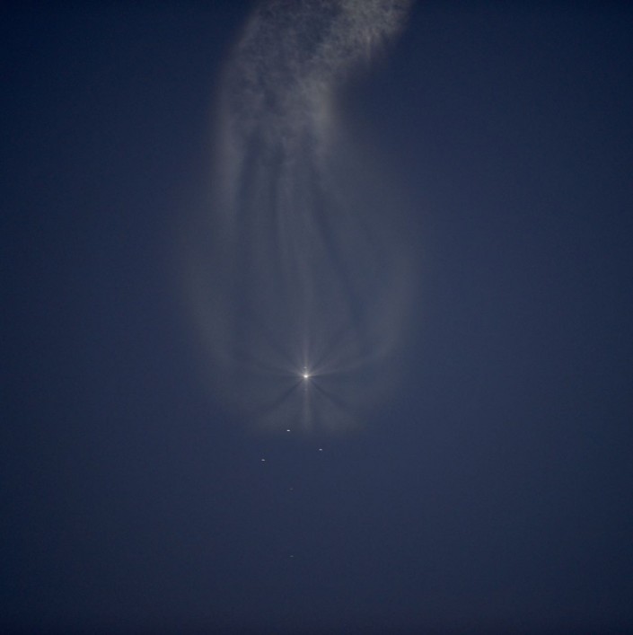 Запуск "Союз". Казахстанцев удивило явление в небе "Союз МС-05" над Жанакорганом, Кызылординская область. Фото очевидца