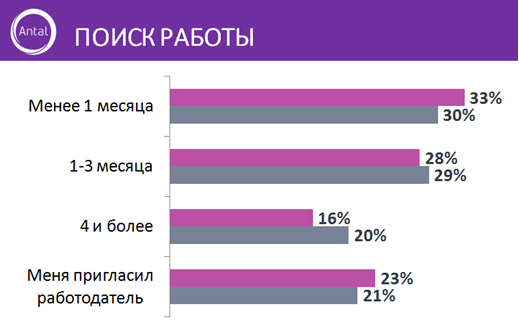 Исследование также показало, что казахстанцы стали быстрее находить работу.  33 процента  респондентов, искавших работу за последний год, смогли трудоустроиться всего за один месяц.  Это на 3 процентных пункта больше, чем годом ранее. А 23 процента опрошенных рассказали, что трудоустроились благодаря прямому приглашению работодателя. Таких респондентов стало тоже больше по сравнению с прошлым годом.