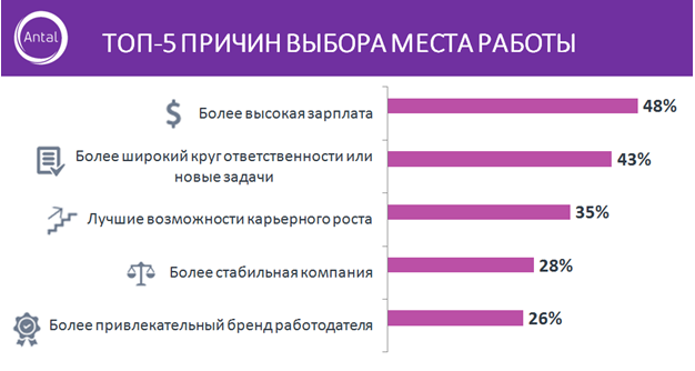 "При смене работы соискатели рассчитывают на куда более заметный рост: от 20 процентов и выше. Помимо этого, главным мотиватором при смене работы для соискателей в Казахстане остается именно более высокая зарплата. Для 48 процентов участников исследования именно перспективы роста зарплаты стали важным аргументом при выборе нового работодателя", - добавляет Анна Ковинская.