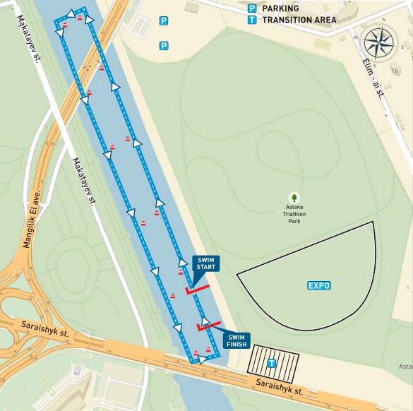 IRONMAN 70.3 Astana начинается с плавания в тихих водах реки Есиль (Ишим). Для атлетов выбран красивейший участок, объединяющий достопримечательности левого и правого берегов Астаны.