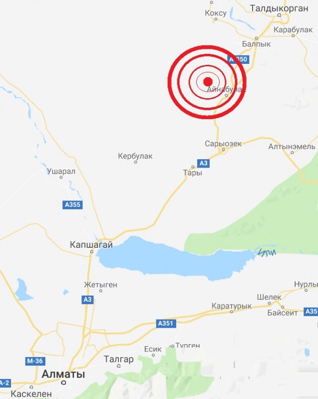 Эпицентр землетрясения находился в 182 километрах на северо-восток от Алматы.