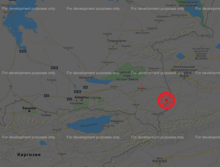Землетрясение произошло в 296 километрах от Алматы Скриншот ЯндексКарты