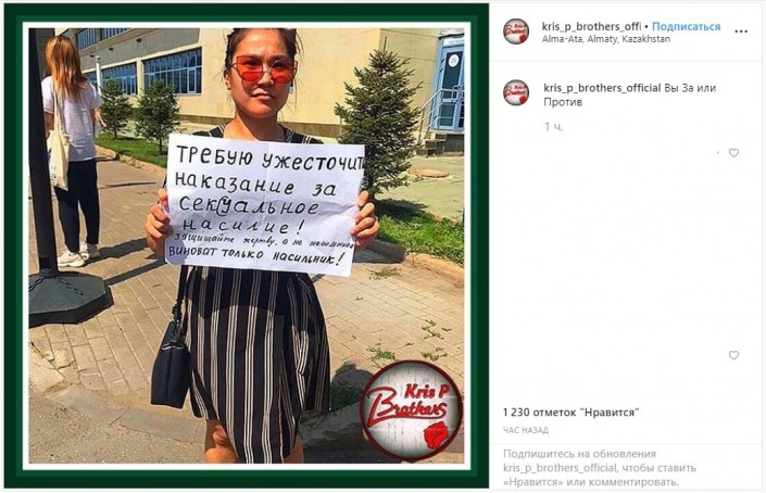 "В столице проходят одиночные пикеты против сексуального насилия и за ужесточение наказания за изнасилования", - написала Аида Джексен.