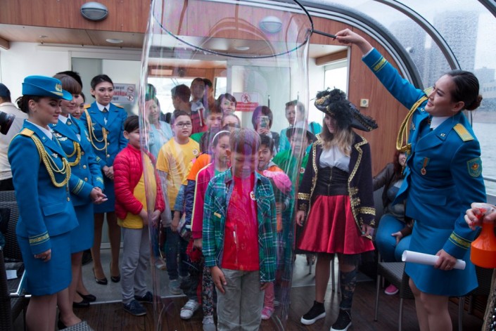 В честь Дня столицы женщины-военнослужащие Вооруженных Сил Казахстана провели в Астане благотворительную акцию. Победительницы конкурса "Батыр арулар" устроили детям из многодетных и малообеспеченных семей необычный праздник на пароходе, сообщает корреспондент Tengrinews.kz со ссылкой на пресс-службу Министерства обороны РК.
