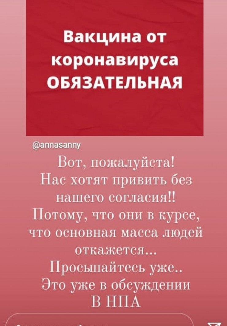 "Келісімімізсіз вакцина салдырғалы жатыр. Себебі олар халықтың басым бөлігі бас тартатынын біледі. Ояныңдар", - делінген хабарламада.
