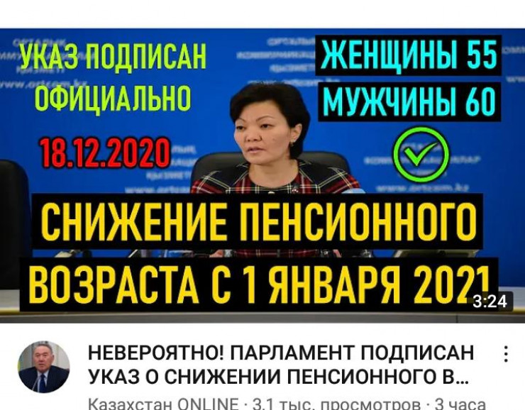 "Ресми: жарлыққа қол қойылды. 2021 жылы 1 қаңтардан бастап зейнеткерлік жас төмендейді", - делінген хабарламада.