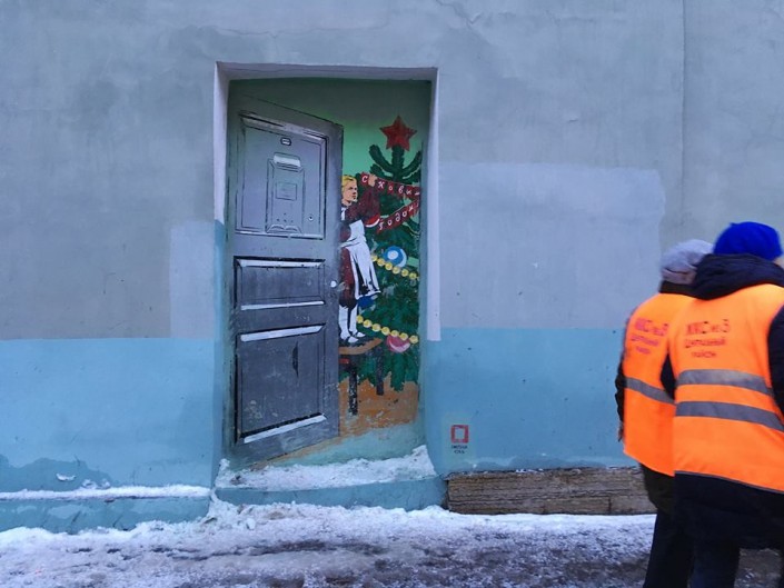 Напомним, в ночь на 31 декабря стрит-арт художник Паша Кас разрисовал в Санкт-Петербурге заложенный дверной проем. На картине была изображена распахнутая дверь в советский Новый год.