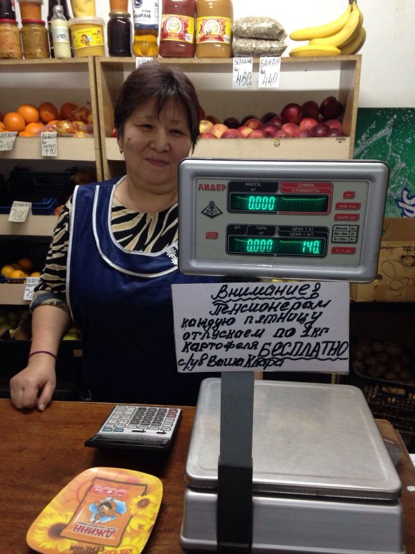 Как говорят покупатели, она и раньше удивляла непривычными маркетинговыми ходами - то яблоко бесплатно в пакет кинет "на пробу", то отговорит от покупки, предлагая что-то вкуснее и дешевле. Желая помочь нуждающимся людям, продавец и в этот раз отличилась оригинальностью. Получить бесплатно килограмм картофеля в отделе Куралай может любой пенсионер.