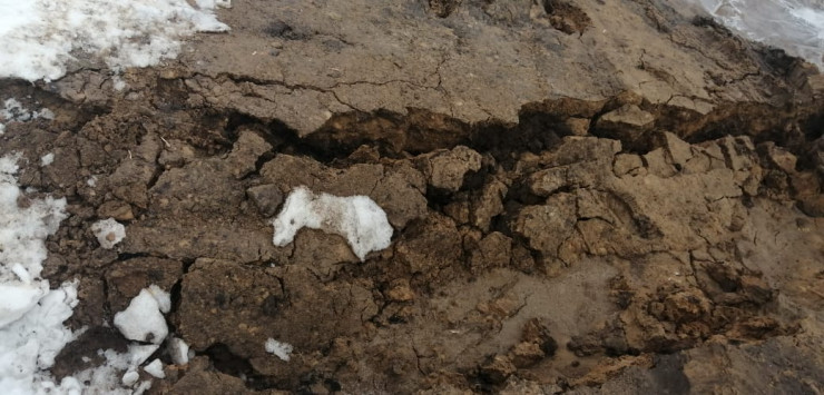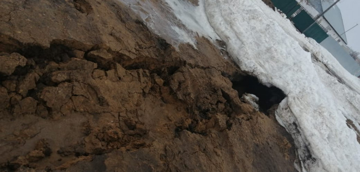 В поселке Алтын-дала Костанайской области жителей пугают дыры и провалы на месте прокладки водопровода. С приходом весны грунт стал проседать и проваливаться, под землей образовались пустоты. Сельчане боятся отпускать детей одних на улицу.