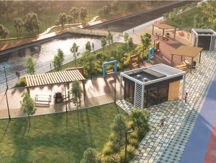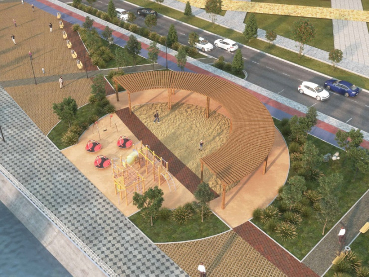 Здесь также появятся теннисные столы, теневые навесы, скамейки-качели, зона для барбекю.