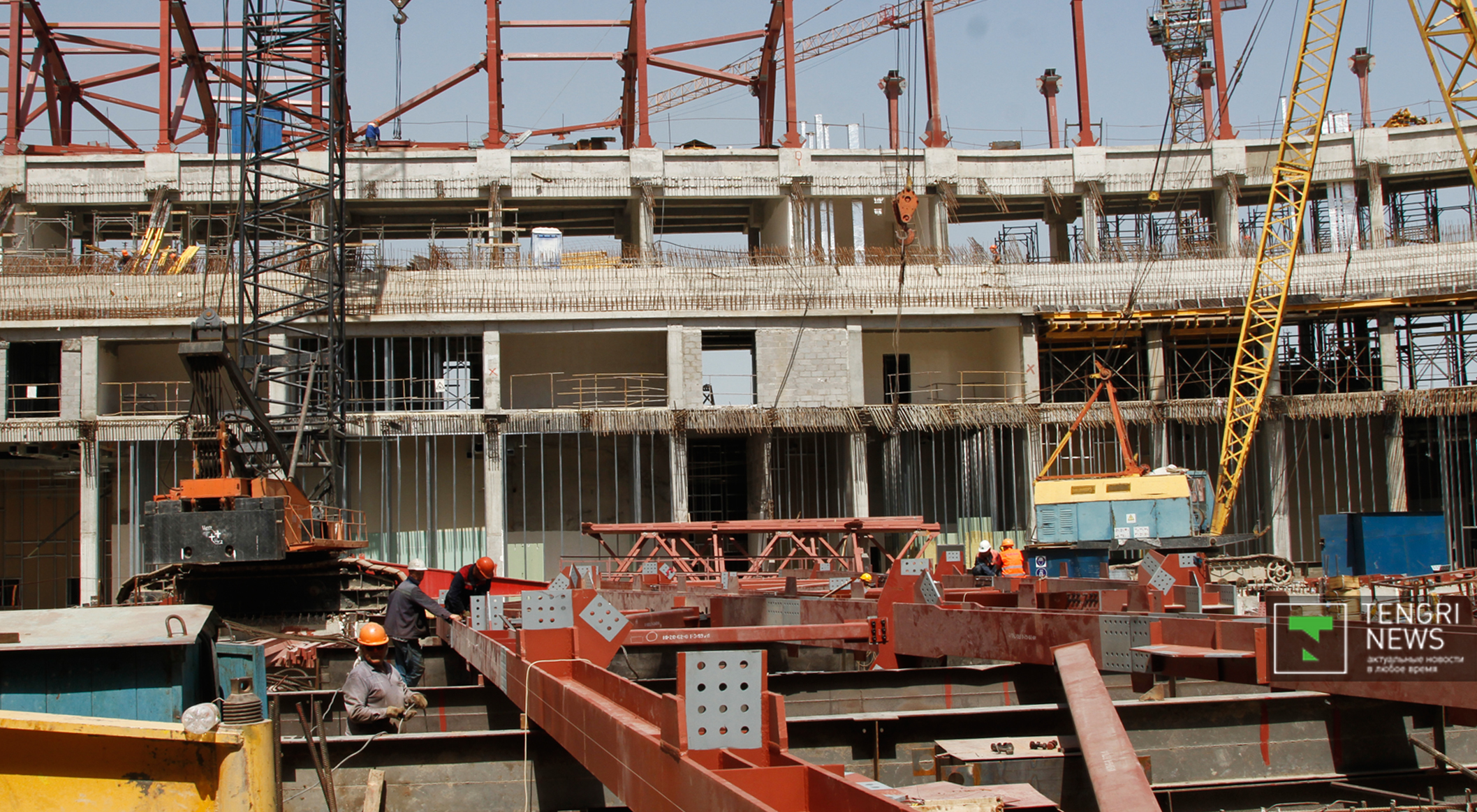 Между тем, по словам замдиректора еще одного подрядчика, компании СК "Базис" Константина Козлова, на строительной площадке трудятся 970 человек. Он заверил, что возведение объектов ведется в срок, строительство в некоторой степени идет даже на опережение. "По договору мы должны сдать объект в октябре 2016 года, но сдадим в августе 2016 года, также проведем тестовые соревнования", - добавил Козлов. Спикер отметил, что уже сейчас идут работы по прокладке инженерных сетей, а также по монтажу металлических конструкций кровли.