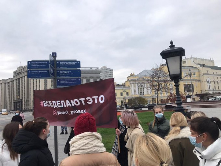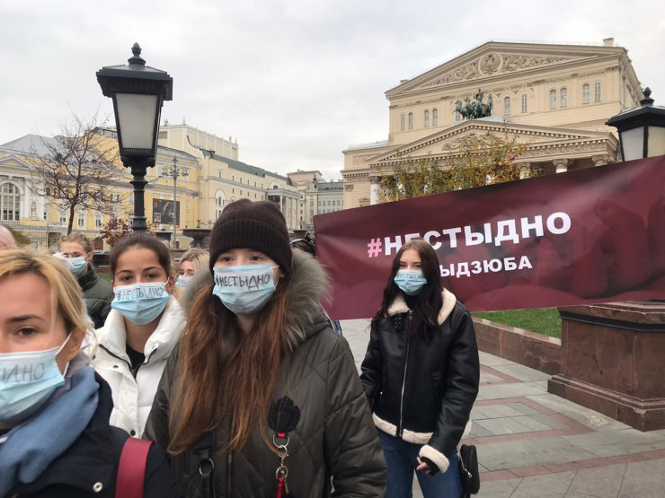 Акция состоялась у Большого театра в четверг, 12 ноября. В мероприятии приняли участие несколько десятков молодых девушек. Они надели маски и подняли баннеры с надписями #нестыдно, #ямыдзюба, #вседелаютэто.