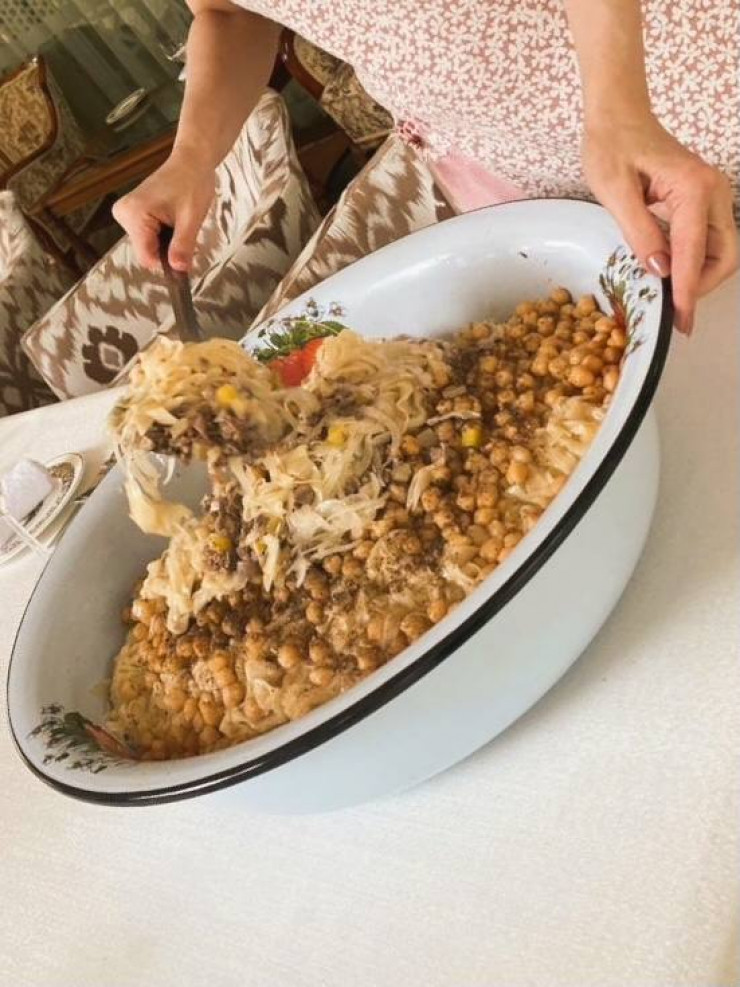 "Воскресенье. Традиционно в этот день мы готовим наши любимые блюда. Одно из них - кульчетай. Мама с утра месит и катает тесто. Папа и вместе с ним вся семья, садимся за один стол, берем доски и режем приготовленное мамой тесто, а мама подает нам горячие свежесваренные ингредиенты: морковь, горох…