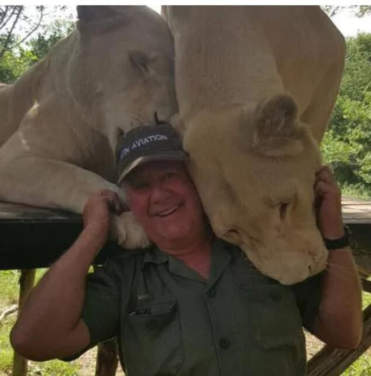 Мужчина спас двух белых львиц, когда те были еще детенышами и находились на охотничьей ферме. Впоследствии хищники жили в его сафари-парке и охотились на диких животных.