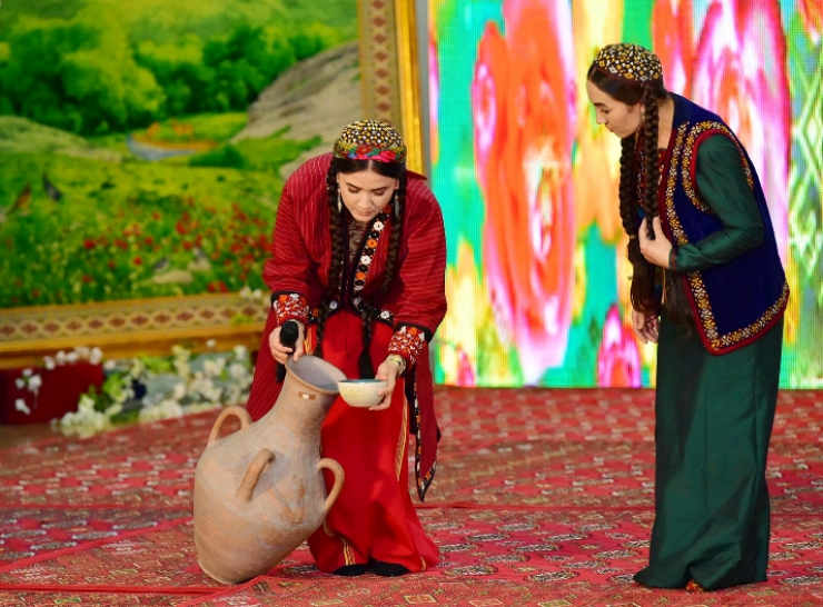 Согласно первому заданию студентки продемонстрировали достижения нашего времени, уважение к туркменским женщинам и девушкам, а также свою способность к искусству и творчеству, продемонстрировали свое мастерство в исполнении восторгающих слов, песен, стихотворений, а также театральных сценок с монологами.