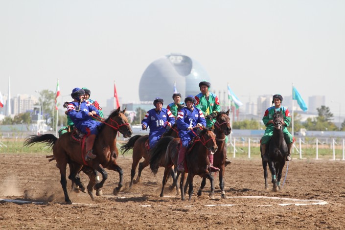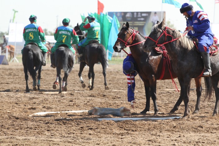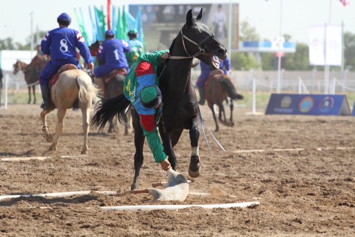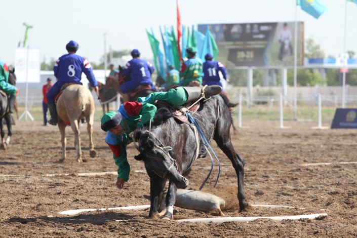 Как сообщили организаторы соревнования, в чемпионате, который проводится на столичном ипподроме "Казанат", принимают участие сборные Казахстана, США, Турции, Узбекистана, Монголии, Таджикистана, Азербайджана, России, Венгрии, Китая и Афганистана. Турнир продлится до 28 августа. Организаторы отметили, что, в отличие от традиционных соревнований, в чемпионате используется резиновый муляж тушки козла весом в 37 килограммов.