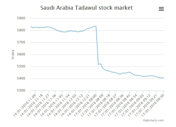 В воскресенье, 17 января, индекс дубайской биржи DFM General Index упал на 4,8 процента, а котировки ценных бумаг на крупнейшей в арабских странах саудовской фондовой бирже Tadawul (ее капитализация составляет 31 миллиард долларов. - Прим.) просели на 7 процентов, достигнув самого низкого уровня почти за пять лет.