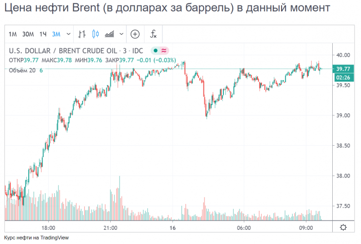 В настоящее время цена на нефть марки Brent сложилась на уровне 39,7 доллара за баррель.