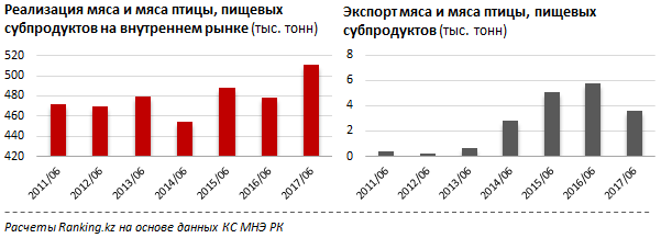 При этом реализация мяса на внутреннем рынке подскочила сразу на 32,7 тысячи тонн (+6,8 процента) и составила 510,5 тысячи тонн за шесть месяцев этого года.