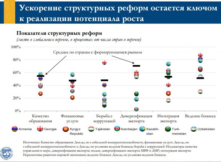 По данным доклада, адаптация налогово-бюджетной политики и корректировка обменного курса позволили странам Кавказа и Центральной Азии смягчить непосредственное воздействие сильных и устойчивых внешних шоков, в частности снижения цен на биржевые товары и сокращения темпов роста экономики основных торговых партнеров. Экономический рост начинает восстанавливаться, но в результате этих шоковых потрясений страны региона столкнулись с высокой уязвимостью бюджета, финансового сектора и внешней уязвимостью, а также с сокращением возможностей выбора политики и ухудшением среднесрочных прогнозов.