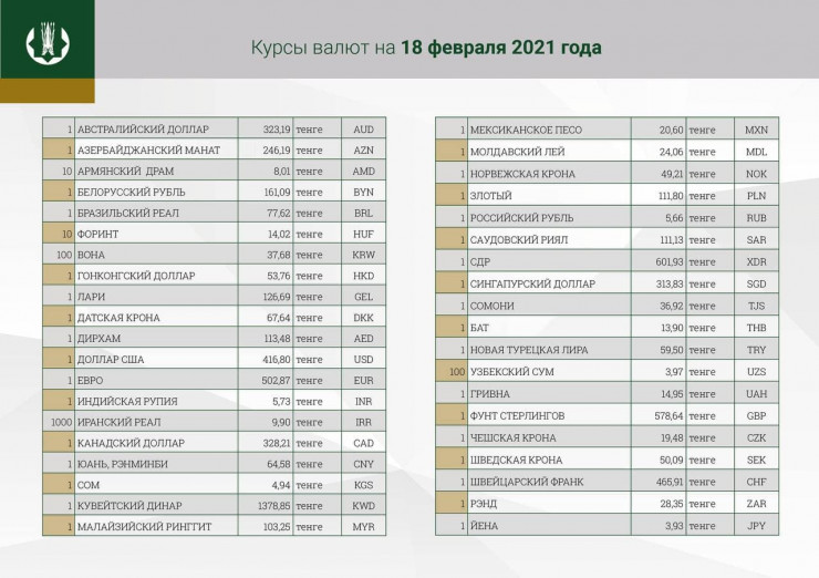 Официальный курс доллара немного повысился по отношению к тенге. Национальный банк Казахстана назвал курс американской валюты на 18 февраля, передает Tengrinews.kz.