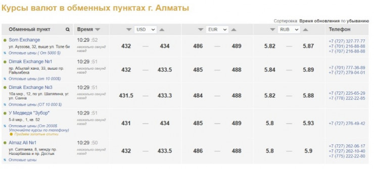 В обменных пунктах доллар продают за 433-434 тенге, покупают за 431-432 тенге.