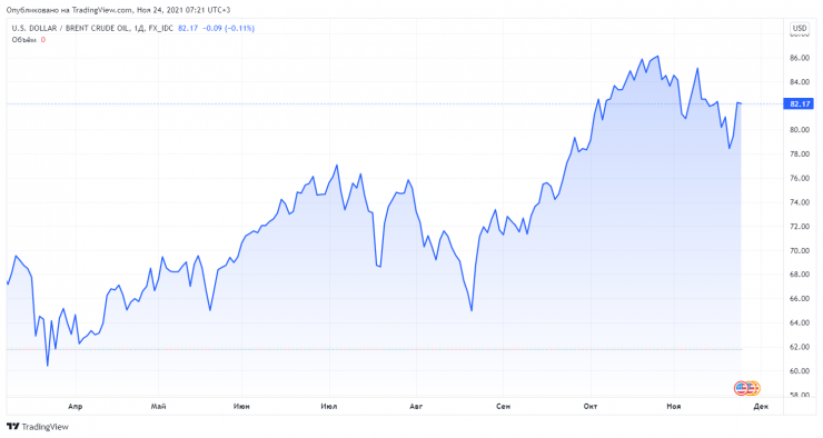 На утро 24 ноября цена нефти сложилась на уровне 82,17 доллара за баррель.
