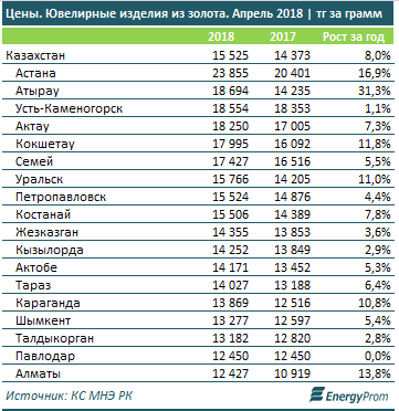 В каких городах Казахстана самая дорогая "ювелирка"