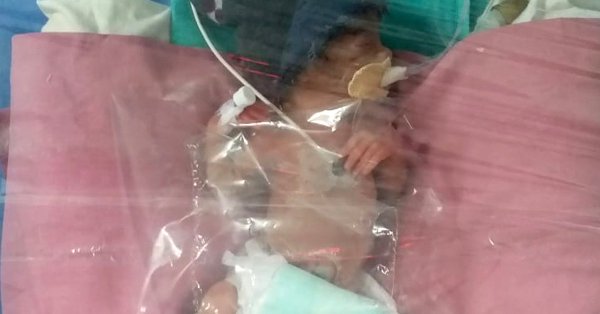 Отцу ребенка - 80 лет. Девочка родилась на седьмом месяце беременности, ее вес составлял менее 700 граммов. Медики провели кесарево сечение, так как дальнейшее пребывание в утробе матери могло угрожать жизни плода.