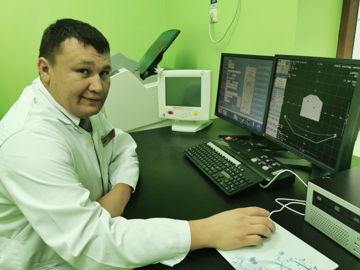 "Высокоэнергетичный линейный ускоритель "True Beam SТx" от американского производителя Varian применяется для лечения онкобольных в ведущих зарубежных клиниках. В зависимости от размера и локализации опухолей наши онкологи-физики подбирают нужную энергию. Затем пучок фотонов направляется в очаг опухоли. Он уничтожает опухолевые клетки, здоровые клетки остаются целыми. То есть есть возможность фокусировать облучение непосредственно в опухоли. Это улучшает качество жизни людей, уменьшает побочные действия излучения для человека. В этот же аппарат встроен так называемый "кибер-нож", то есть радиохирургия. Эта процедура равносильна хирургии. Полностью за один сеанс опухоль уничтожается. Томотерапия применяется при распространенных опухолях. Но это все индивидуально, по назначению врача", - рассказал онколог.