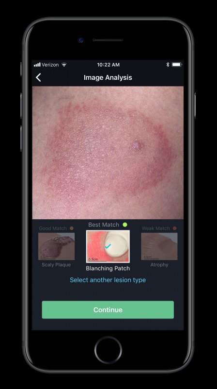Осенью этого года в приложение добавили возможность использовать камеру iPhone и технологию машинного обучения для определения состояния кожи или сужения списка возможных диагнозов. Решение позволяет определять заболевания по фотографии. Так, VisualDx способно предоставить список условий, которые приводят к возникновению сыпи.