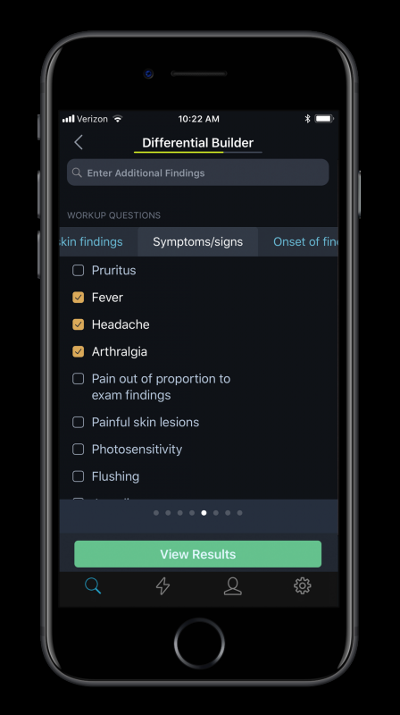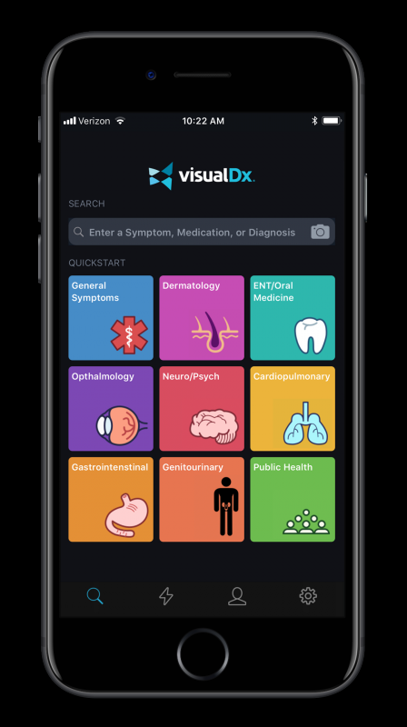Приложение VisualDx позволяет врачам подтверждать диагнозы, пользователи могут искать заболевания по различным симптомам с учетом информации о пациенте. Стоимость доступа ко всем базам данных компании составляет 499 долларов, однако подписку на приложение обычно оформляет медицинское учреждение. Врачи могут добавить дополнительные симптомы в ходе анализа, а также просмотреть информацию о различных заболеваниях.