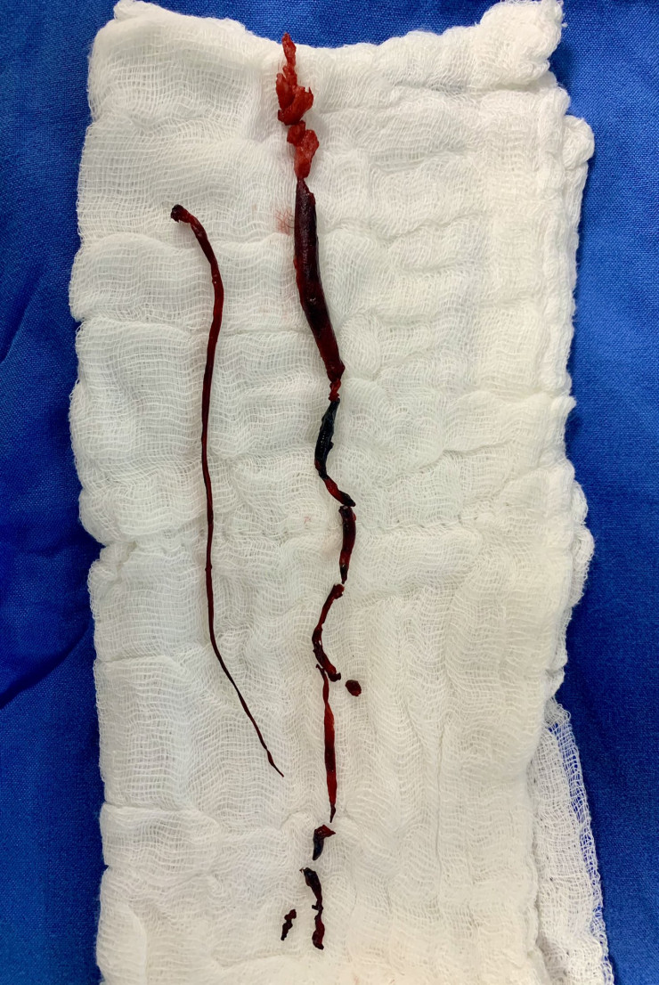 При этом хирург отметил, что пациенту, у которого удалили такой длинный тромб, удалось спасти конечность.