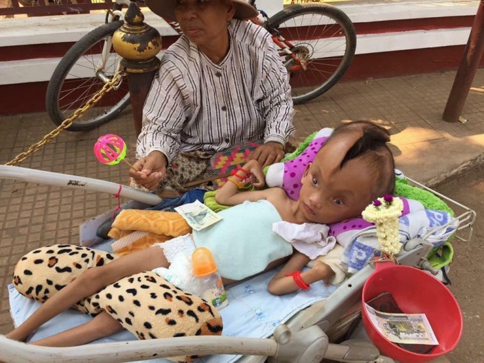 Семья ребенка очень хочет помочь больному сыну. Но лечение за рубежом стоит очень дорого. Бабушка мальчика каждые выходные ходит в храм "Ангкор-Ват", где просит милостыню, тем самым собирая деньги на операцию.