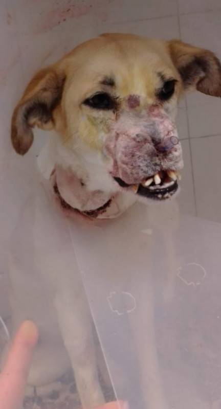 "Радуйтесь, Люди! Малышка Нюша - собачка с изуродованной нелюдями мордочкой и страшной раной на шее - благополучно пережила пластическую операцию и теперь у нее почти все хорошо. Почему почти? Потому что шею зашить не успели. Операция на собачьем личике оказалась сложнее, чем предполагали, и заняла больше времени", - написала зоозащитница Любовь Снежко.