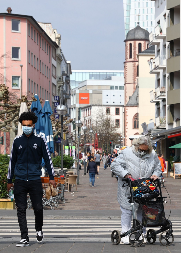 Люди в защитных масках во Франкфурте. © Reuters