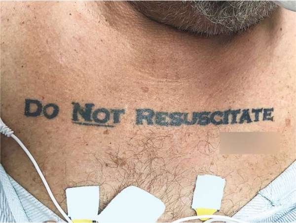 Перед врачами из университетского госпиталя Майами встала этическая дилемма после того, как в больницу поступил мужчина без сознания. 70-летний пациент, которого не удалось опознать, оказался в реанимации с высоким содержанием алкоголя в крови и не приходил в сознание, пишет портал Мedialeaks. Проблема у докторов возникла из-за татуировки на груди мужчины - он набил на себе надпись "не реанимировать".
