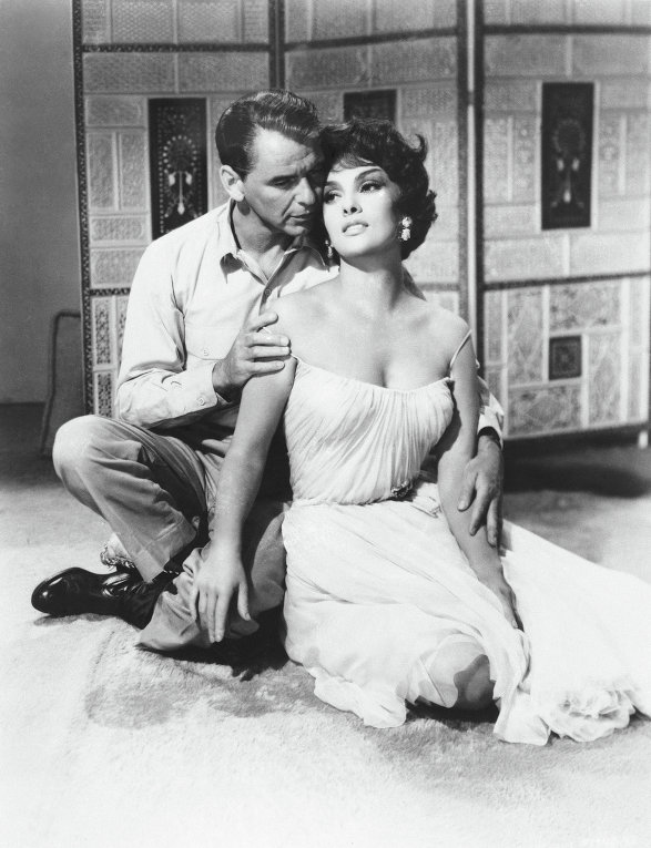 Фрэнк Синатра и итальянская актриса Джина Лоллобриджида в фильме "Так мало никогда", 1959 год.