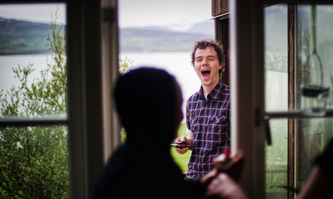 Сделайте паузу и поговорите вслух. Вы говорили на выдохе, правильно? Еще одна вещь, которая отличает исландцев - некоторые слова и даже целые фразы они проговаривают не на выдохе, а на вдохе. Это типично и для других языков Северной Европы.